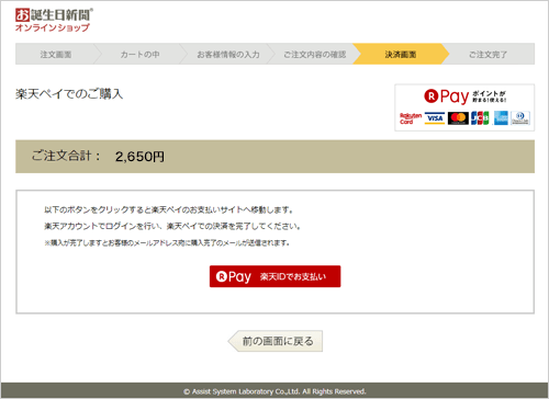 3. お支払い方法を選択し、「注文確認画面へ進む」をクリックします。